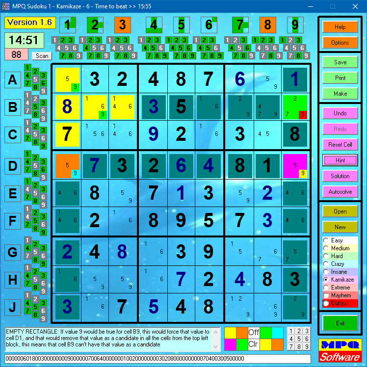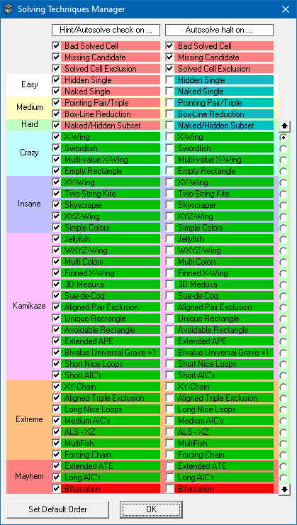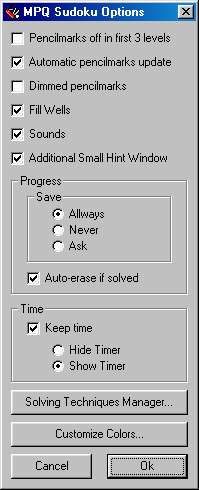 MPQ Sudoku 1 has the following build-in solving techniques, covering eight difficulty levels: